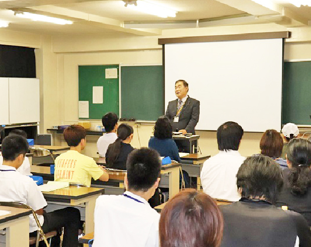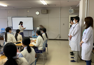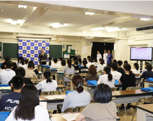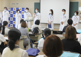 1年生の生徒さんを対象に臨床検査技師のお仕事の話から本校の特色までを説明しました。