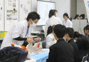 毎年、多くの中学校・高等学校の生徒さんを中心に大勢の方々が来場される大型イベントです。今年はブースに来られた方々に血液型と内視鏡の検査を体験して頂きました。